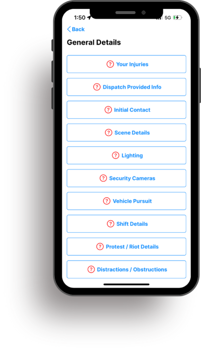 We designed our solution to give law enforcement, civilians, and their attorneys the ability to quickly and effectively document crucial details that support their defense. By combining decades of investigative expertise with modern technology, we ensure that the right to self-defense is not only protected in the moment—but also preserved long after.